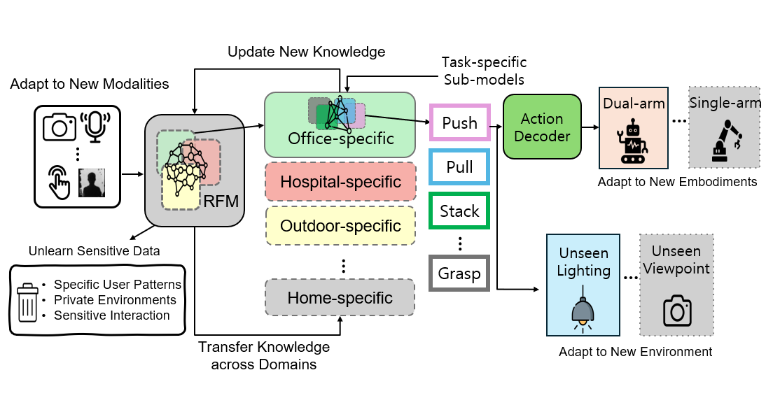 This projects develops methods for lifelong learning that enables robots to leverage foundational knowledge and continuously adapt to new tasks, domains, and sensory modalities over time.